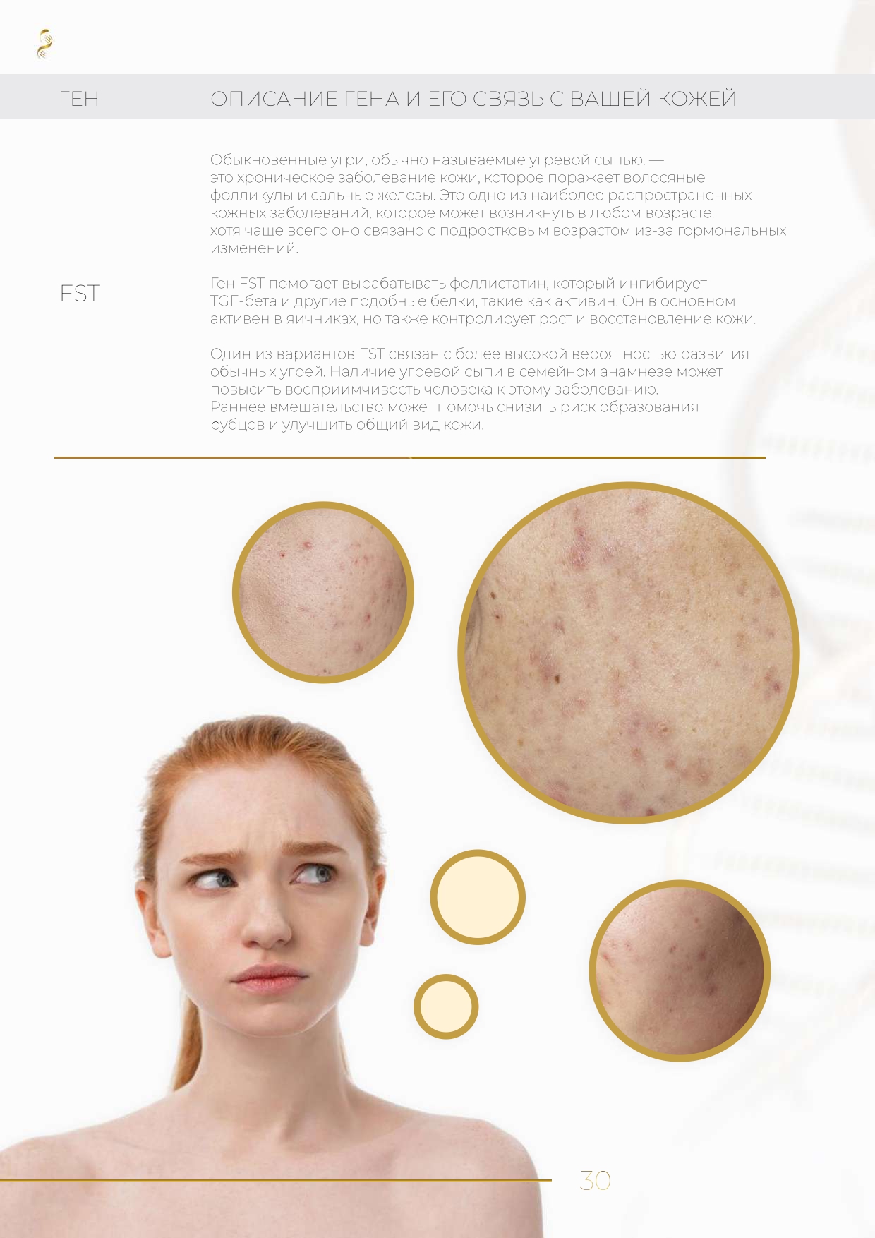 В данном тесте исследуется только предрасположенность к заболеваниям кожи, например, акне.
